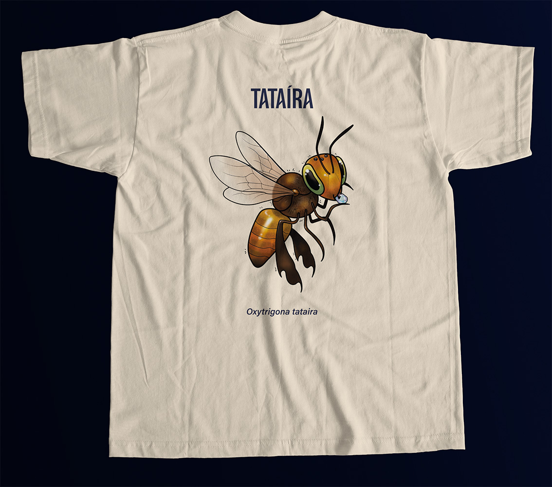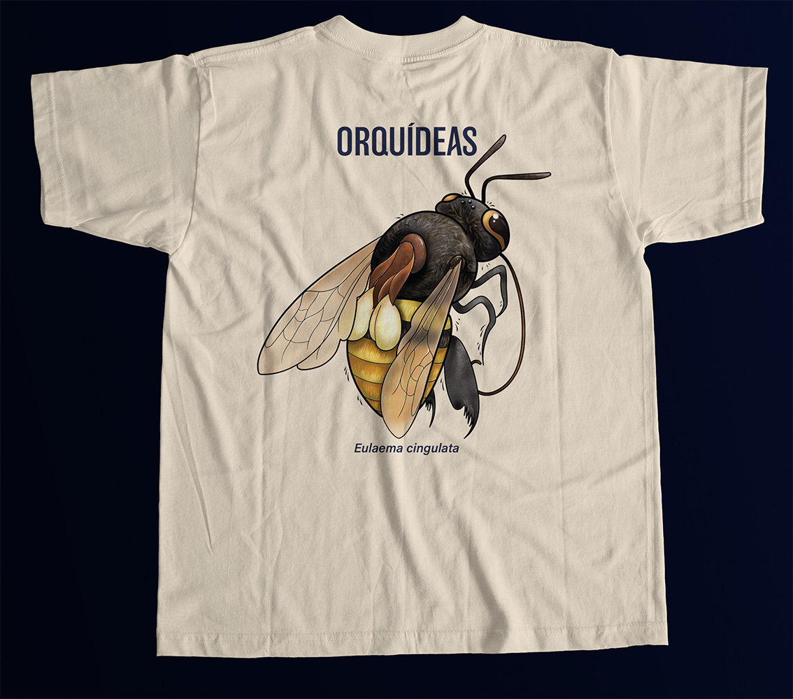 Camiseta 100% algodão da abelha brasileira das orquídeas Eufrisea violacea. Estampa maior na parte de trás da camiseta.