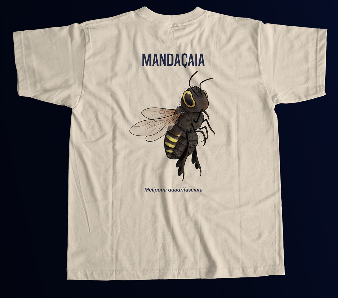 Camiseta 100% algodão da abelha brasileira das orquídeas Eulaema cingulata. Estampa maior na parte de trás da camiseta.