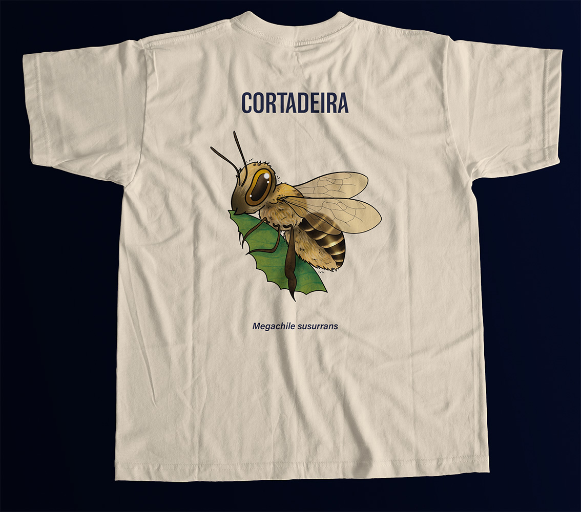 Camiseta 100% algodão da abelha carpinteira brasileira Xylocopa frontalis. Estampa maior na parte de trás da camiseta.